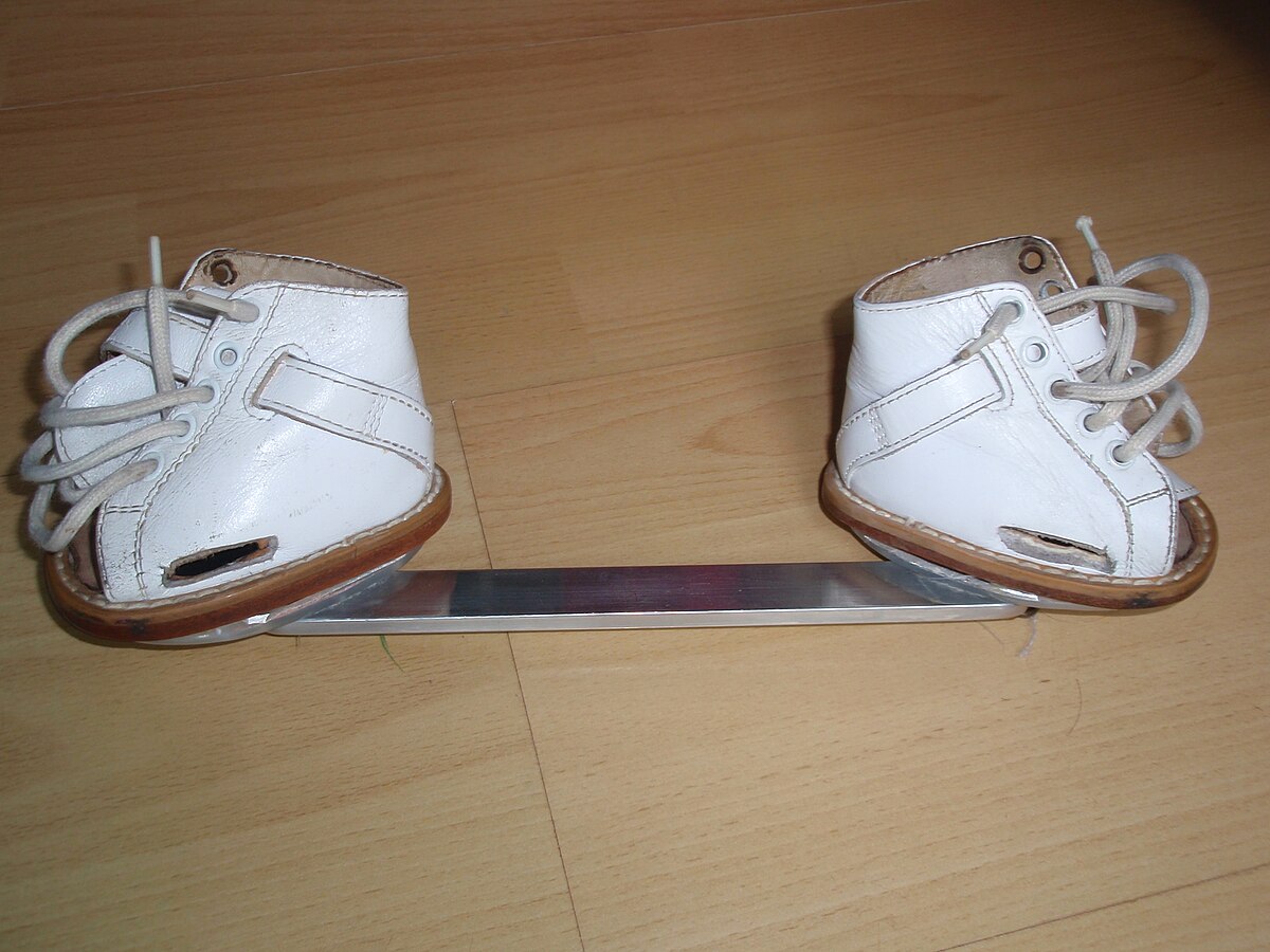 a Denis Browne Bar for treating club footI was 2 weeks late- during a near-record hot summer back when central Air was not yet ubiquitous. Postpartum seems likely- along with Mom’s other issues– and mixed feelings over a child that’s bound up in a torture device (picture of a Denis-Brown Bar links to a larger version) that prevents, or at least restricts, cuddling.